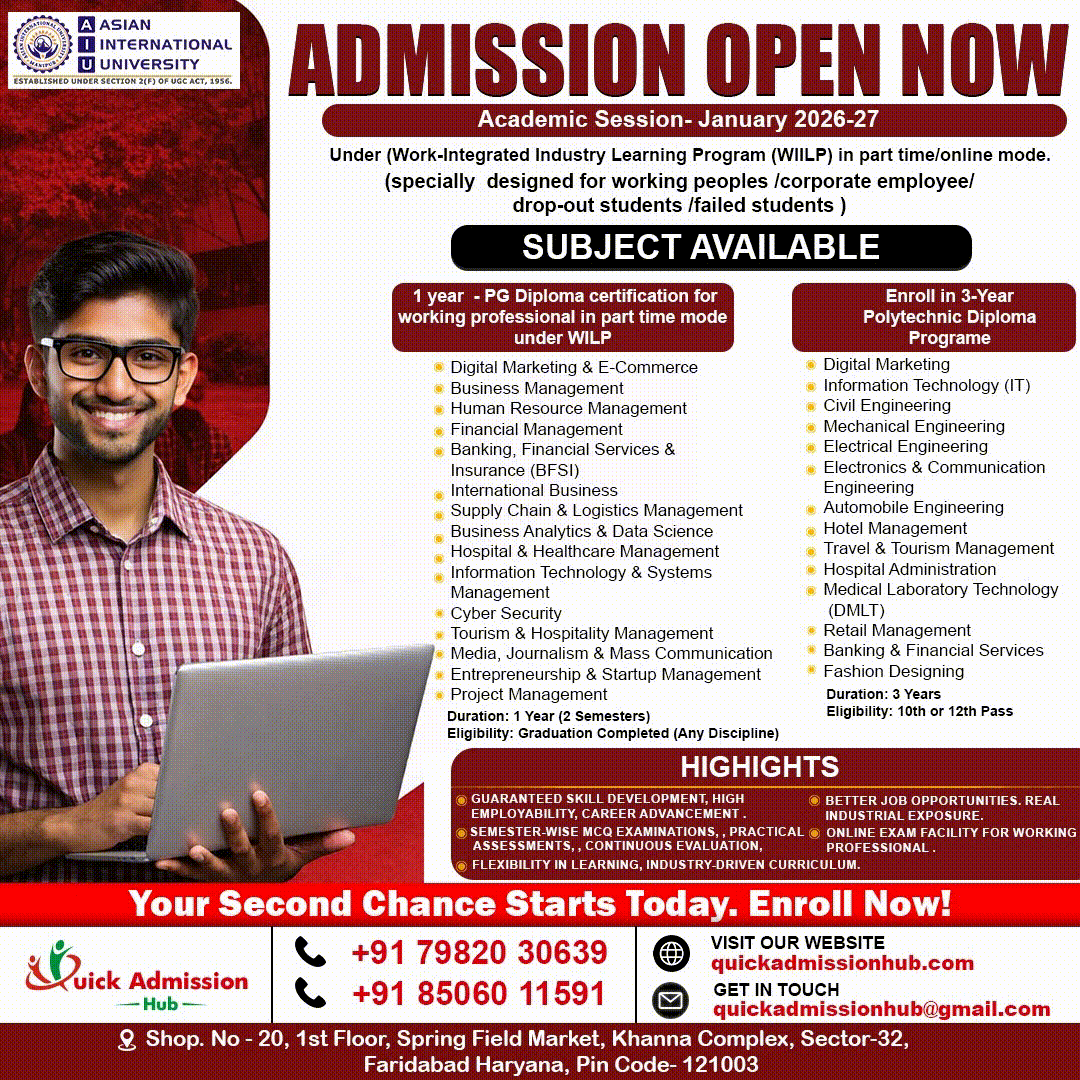 Quick Admission Hub very well known to many people in the areas of research and innovation and research publication. Since last couple of years, our organization is stepping towards tremendous growth in the sector of regular admission and distance education sector in all over India. Our vision is based on hard work, open communication, a strong emphasis on team work and a high level of responsibility. This visionary culture allows and emphasizes our wards not only to adopt the present-day challenges but also individual responsibilities to the society and our nation at large. Students are exposed to information, knowledge, and an environment which is congenial to the growth and all-round development of personality.